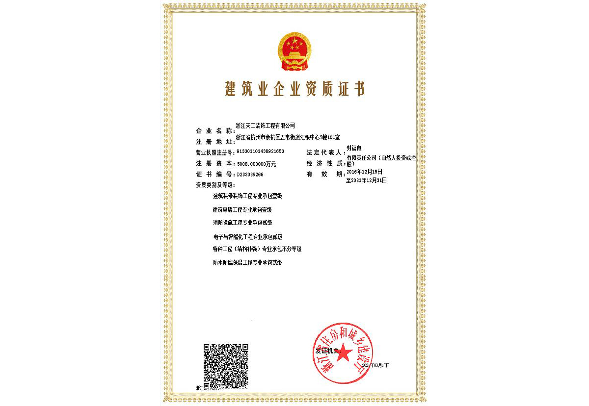 浙江天工裝飾工程有限公司成立于1994年,是一家專注于建筑行業(yè)近三十年,余杭區(qū)內(nèi)規(guī)模最大、最專業(yè)的現(xiàn)代化專業(yè)承包企業(yè),連續(xù)十二年榮獲“余杭區(qū)建筑業(yè)十強(qiáng)企業(yè)”稱號(hào)。公司現(xiàn)任余杭區(qū)建筑裝飾行業(yè)協(xié)會(huì)會(huì)長(zhǎng)單位、杭州市建筑裝飾行業(yè)協(xié)會(huì)副會(huì)長(zhǎng)單位、浙江省建筑裝飾行業(yè)協(xié)會(huì)副會(huì)長(zhǎng)單位、中國(guó)建筑裝飾協(xié)會(huì)理事單位。公司具備建筑裝修裝飾工程專業(yè)承包壹級(jí)、建筑幕墻工程專業(yè)承包壹級(jí)、建筑裝飾工程設(shè)計(jì)專項(xiàng)甲級(jí)、建筑幕墻工程設(shè)計(jì)專項(xiàng)甲級(jí)、展覽陳列工程設(shè)計(jì)施工一體化貳級(jí)、電子與智能化工程專業(yè)承包貳級(jí)、消防設(shè)施工程專業(yè)承包貳級(jí)、防水防腐保溫工程專業(yè)承包貳級(jí),集建筑工程施工總承包、建筑機(jī)電安裝、城市及道路照明、鋼結(jié)構(gòu)、結(jié)構(gòu)補(bǔ)強(qiáng)、安防施工等多項(xiàng)資質(zhì)。主要從事大型公共建筑、星級(jí)酒店的室內(nèi)精裝修、建筑幕墻及建筑智能化工程的設(shè)計(jì)與施工。 天工裝飾始終把建筑裝飾當(dāng)作一項(xiàng) “美的事業(yè)”,在施工中嚴(yán)把質(zhì)量關(guān),不斷規(guī)范和提升工程技術(shù)標(biāo)準(zhǔn)。近年來,公司承建的浙商開元名都國(guó)際酒店I標(biāo)段裝飾工程、杭州藝尚雷迪森廣場(chǎng)酒店裝修工程、余杭區(qū)時(shí)代廣場(chǎng)5號(hào)樓(市民之家)室內(nèi)裝飾工程、永安之星室內(nèi)裝飾工程、青山湖科技城創(chuàng)業(yè)廣場(chǎng)裝修工程、杭州未來科技城醫(yī)院室內(nèi)裝飾工程、杭州師范大學(xué)附屬實(shí)驗(yàn)學(xué)校裝修工程、杭州老板電器股份有限公司辦公樓裝飾工程、深川控股集團(tuán)綜合樓幕墻工程、浙江省科技信息研究院幕墻工程、北航杭州創(chuàng)新研究院(余杭)內(nèi)裝及智能化提升改造項(xiàng)目(研究生院)工程、臨平新城人才服務(wù)中心設(shè)計(jì)釆購施工(EPC)工程總承包項(xiàng)目、浙江大學(xué)先進(jìn)電氣裝備創(chuàng)新中心室內(nèi)外裝飾及改造項(xiàng)目設(shè)計(jì)采購施工(EPC)工程總承包項(xiàng)目等,先后獲得“中國(guó)建筑工程裝飾獎(jiǎng)”、“全國(guó)建筑裝飾科技創(chuàng)新獎(jiǎng)”、浙江省建設(shè)工程“錢江杯”優(yōu)質(zhì)工程獎(jiǎng)、杭州市建設(shè)工程“西湖杯”優(yōu)質(zhì)工程獎(jiǎng)、嘉興市建設(shè)工程“南湖杯”優(yōu)質(zhì)工程獎(jiǎng)、“浙江省優(yōu)秀建筑裝飾工程獎(jiǎng)”、“浙江省優(yōu)質(zhì)安裝質(zhì)量獎(jiǎng)”等榮譽(yù)。 天工裝飾恪守“誠實(shí)守信、文明經(jīng)營(yíng)”,近年來公司得到了客戶的信賴也獲得了業(yè)界的好評(píng),先后被評(píng)為“國(guó)家級(jí)守合同重信用單位”、“全國(guó)建筑裝飾行業(yè)AAA級(jí)信用企業(yè)”、“全國(guó)百家科技創(chuàng)新型企業(yè)”、“浙江省AAA級(jí)守合同重信用單位”、“人民銀行信用等級(jí)AAA級(jí)企業(yè)”、“浙江省信用管理示范企業(yè)”、“浙江省誠信企業(yè)”、“浙江省建筑裝飾行業(yè)強(qiáng)優(yōu)企業(yè)”、“杭州市建筑業(yè)優(yōu)秀企業(yè)”、“余杭區(qū)建筑業(yè)十強(qiáng)企業(yè)”、 “余杭區(qū)人民政府質(zhì)量獎(jiǎng)”等榮譽(yù)。
